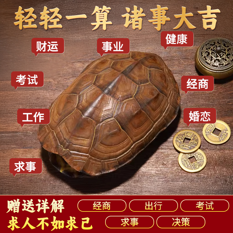 天然真乌龟壳龟甲文玩六爻摇卦工具周易64卦牌铜钱把玩件摆件桌面
