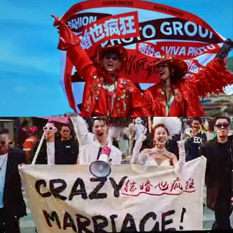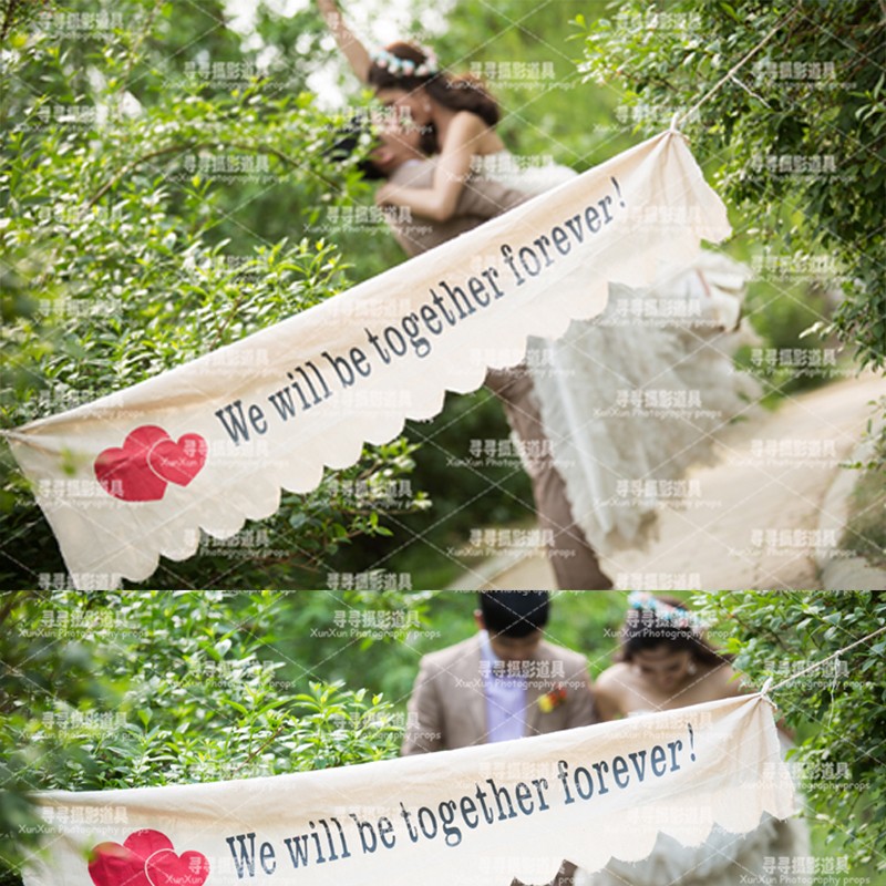 现货速发结婚也疯狂主题手拿横幅背景街拍婚纱摄影旅拍照道具英文