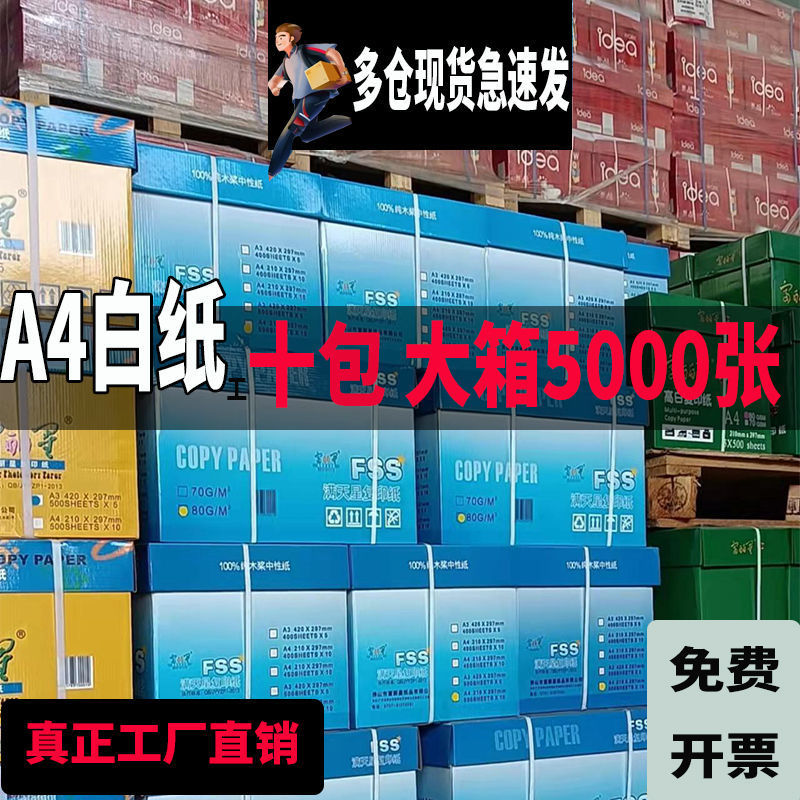 大整箱10包5000张A4白纸复印打印纸工厂A5A3绘图办公用纸