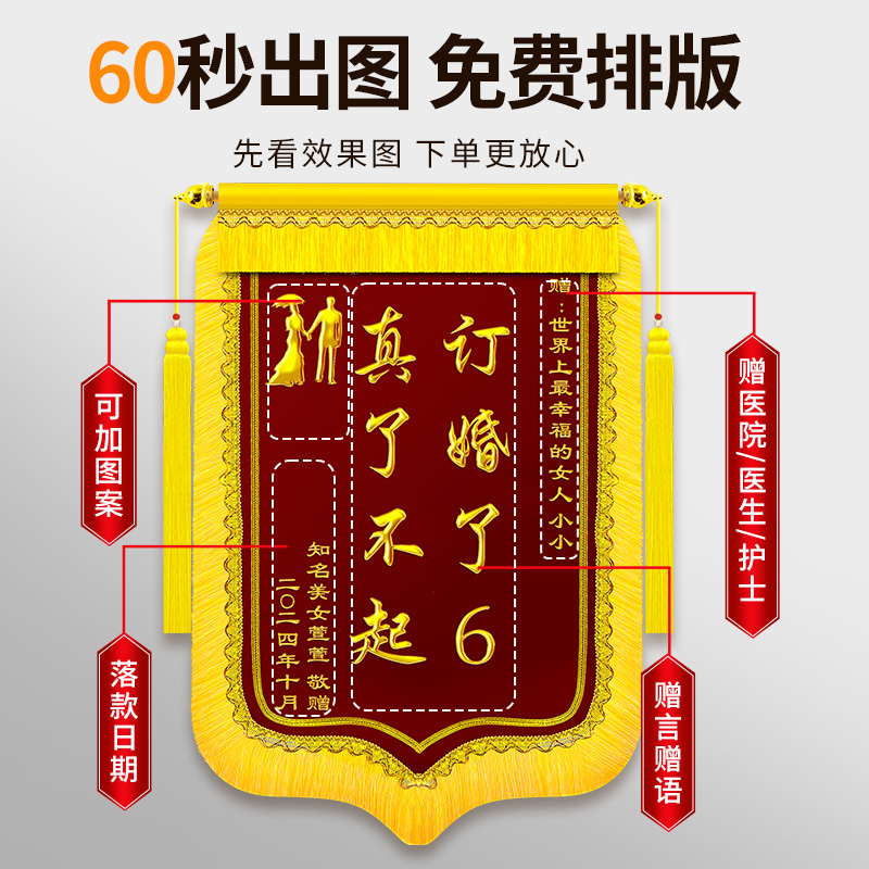订婚了6锦旗送闺蜜结婚订婚了真了不起锦旗定做赠送好朋友哥们结婚搞笑锦旗定制作感谢新婚礼物定亲婚礼服务