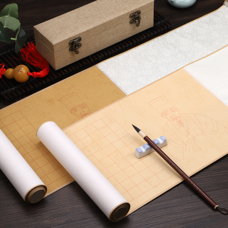 安徽泾县手工蜡染笺琴赋作品纸文征明小楷书法2cm方格半生熟不洇深/浅仿古色文徵明毛笔书法已装裱手卷锦盒装