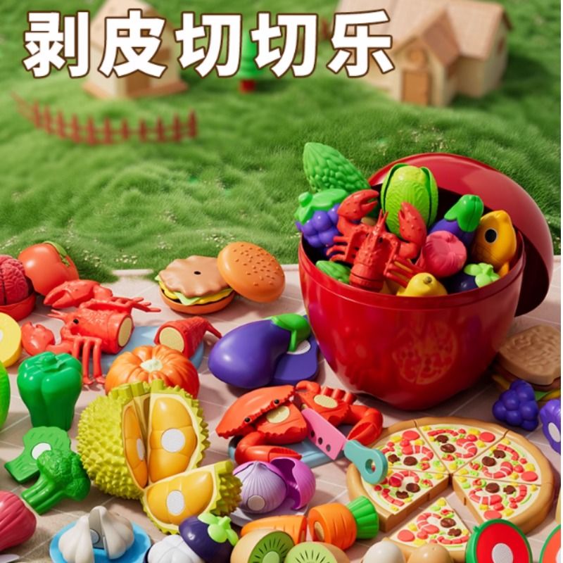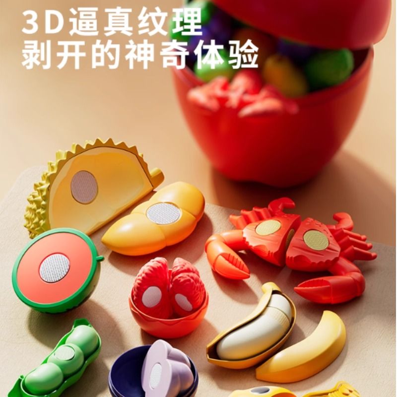 水果切切乐儿童玩具仿真果蔬菜可切剥皮榴莲可啃咬厨房收纳过家家