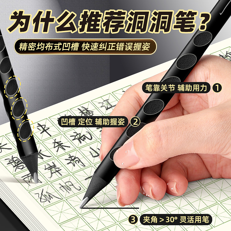 【专属刻字】咔巴熊黑木洞洞三角杆2b书写铅笔考试涂卡学生用矫正握姿安全无铅毒不易断hb初学者小学生练字笔