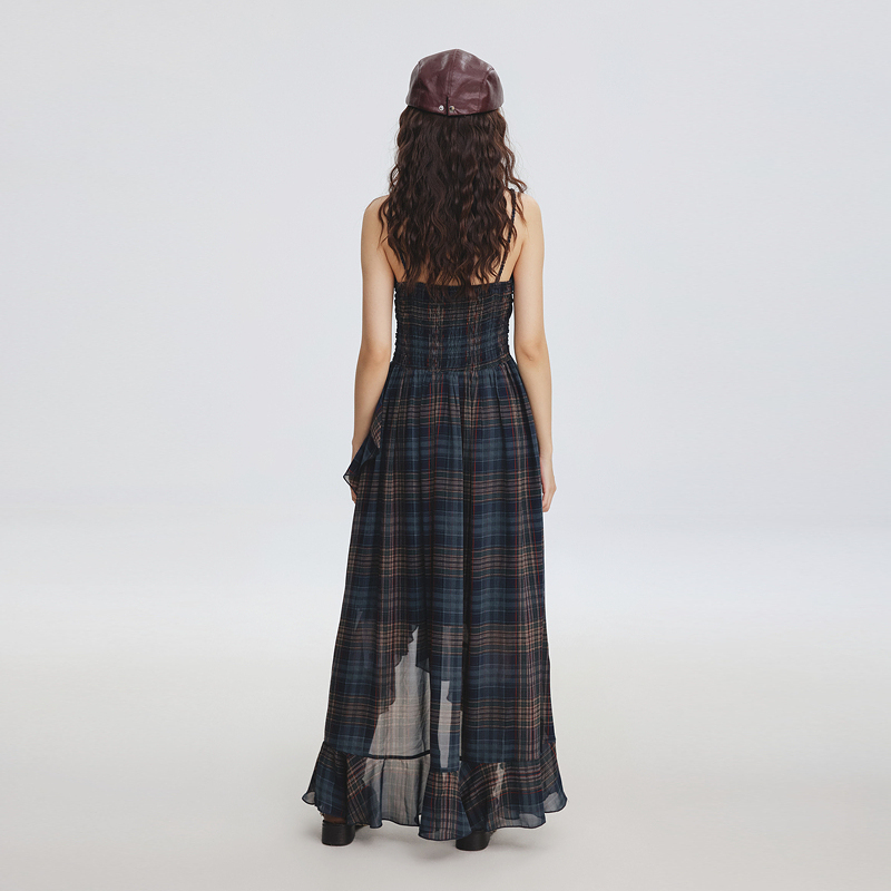 记忆的起点吊带连衣裙女2025夏季新款气质格纹a字长裙子69AX82118