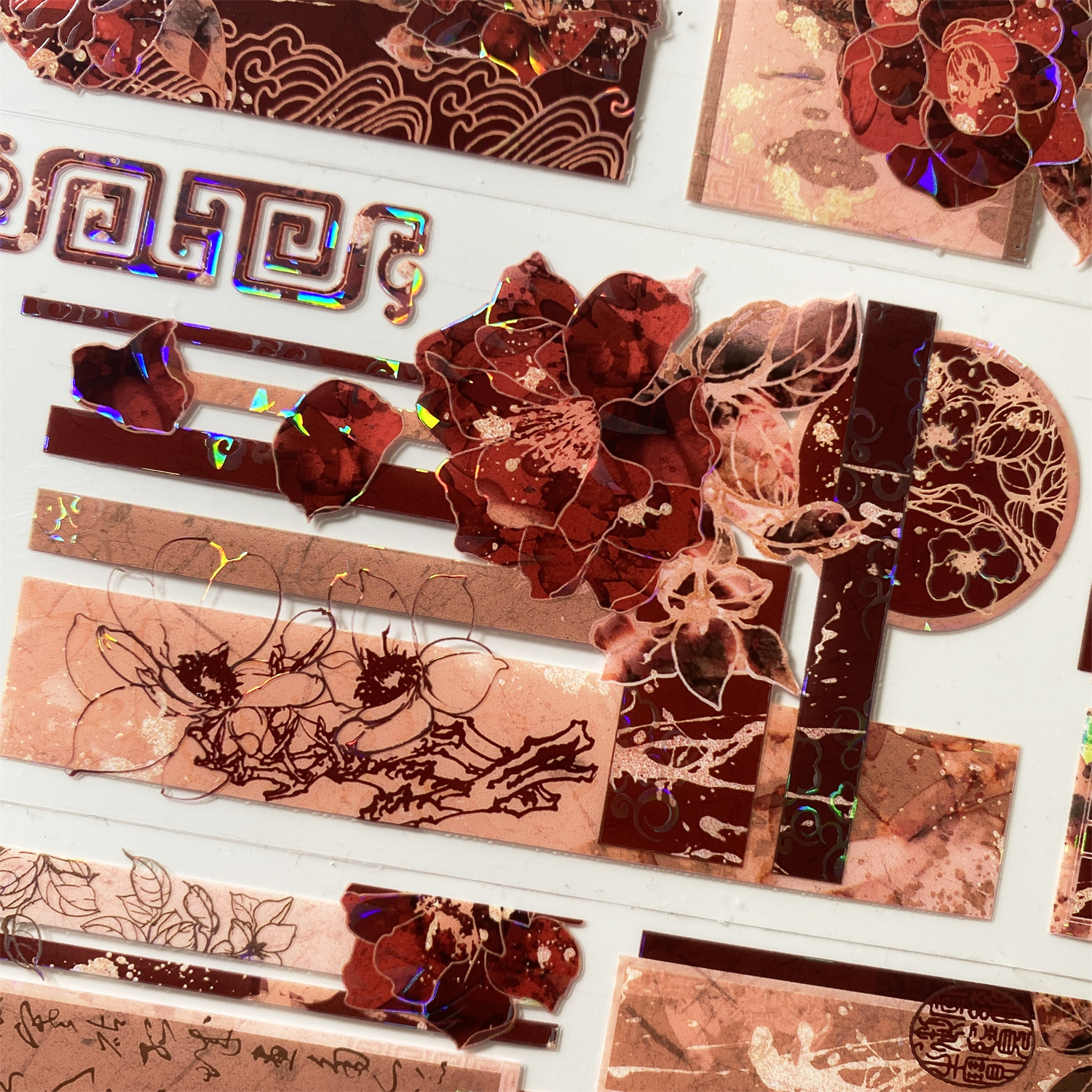 手帐分装胶带50山茶暮夜没尾巴的猫工作室花字古风素材账流麻贴纸