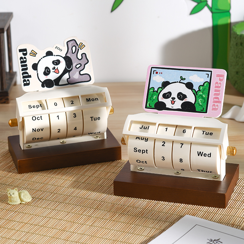 熊猫转轮万年历卡通桌面木质小台历可定制logo台历办公室桌面小摆件高考研倒计时提醒牌励志2025日历公司团购