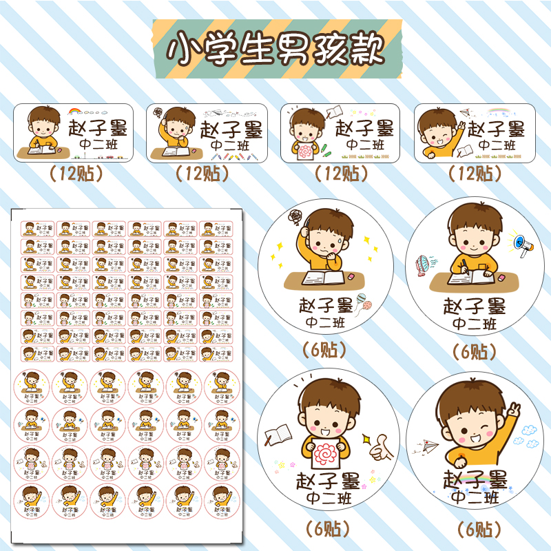 猫太子小学生专用姓名贴幼儿园儿童名字贴防水防撕标签贴纸一年级入学必备学习用品标记分类不干胶口取纸开学