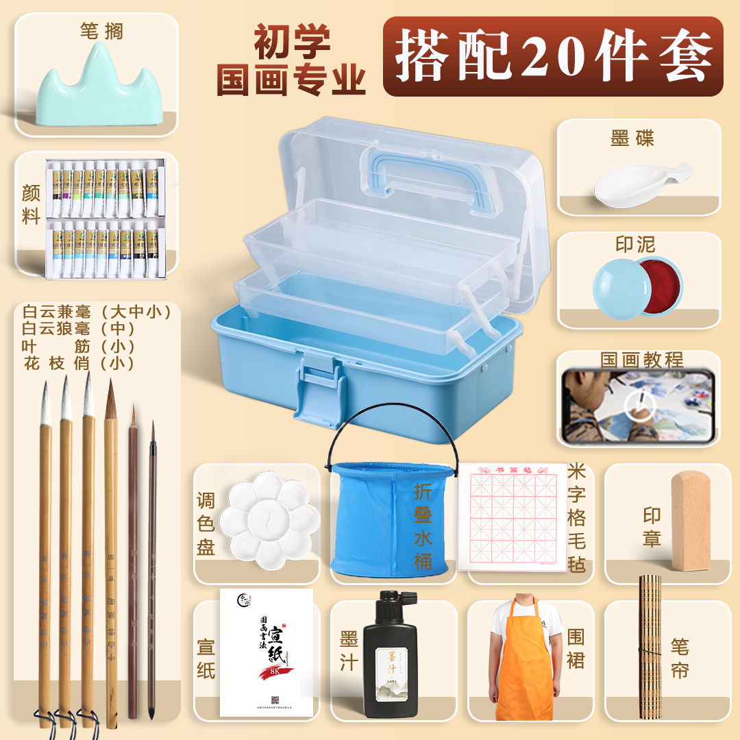 马利牌中国画颜料初学者套装小学生儿童入门12色24色国画毛笔套装工笔画成人水墨画用品工具全套美术生专用