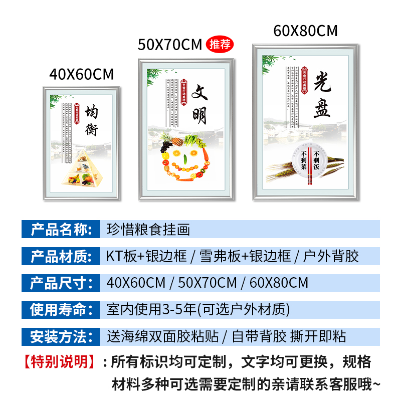 珍惜粮食节约粮食宣传标语校园餐厅食堂文化贴纸倡导光盘行动节约粮食文明用餐温馨提示牌上墙贴装饰挂画定做