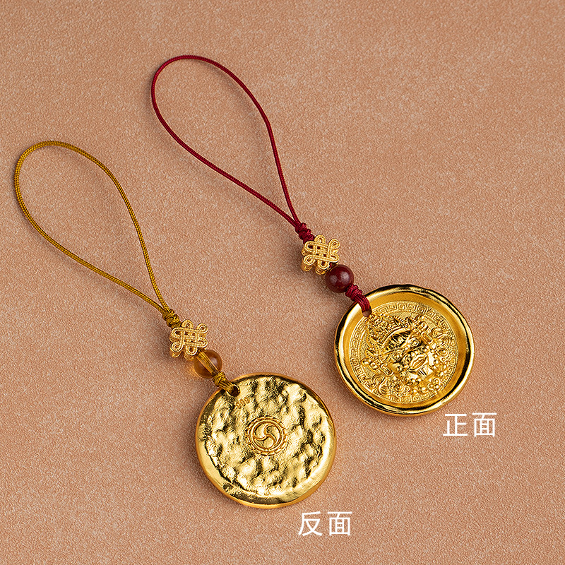 藏式财运手机挂绳手机链挂件女藏传黄财神钥匙扣黄铜金色创意