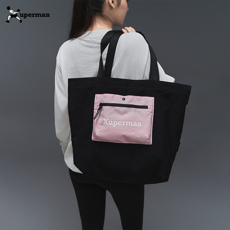 Xuperman拼色大容量牛仔挎包托特包可手拎斜挎户外运动