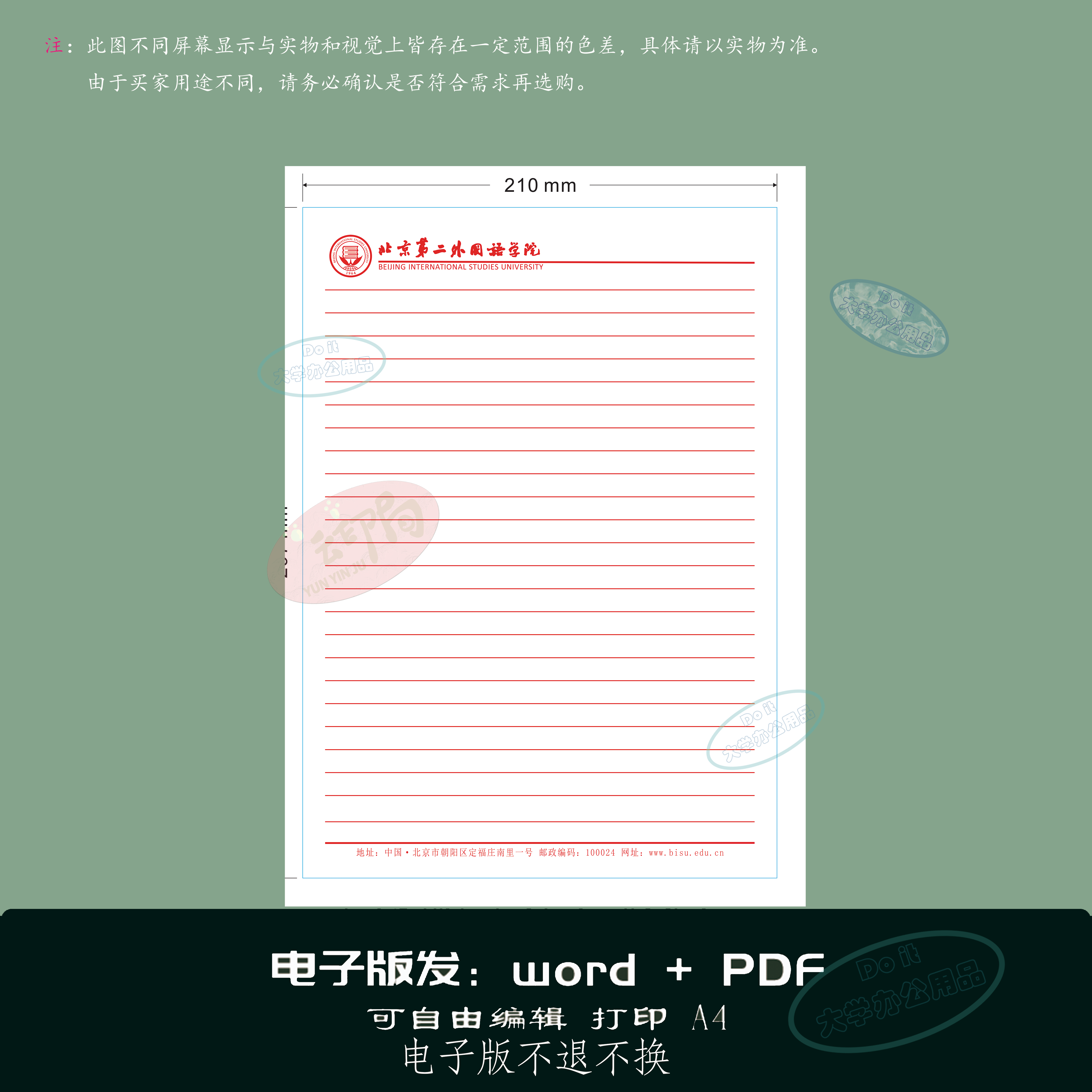 北京第二外国语学院稿纸抬头纸横线信纸信笺草稿纸作业纸思想报告