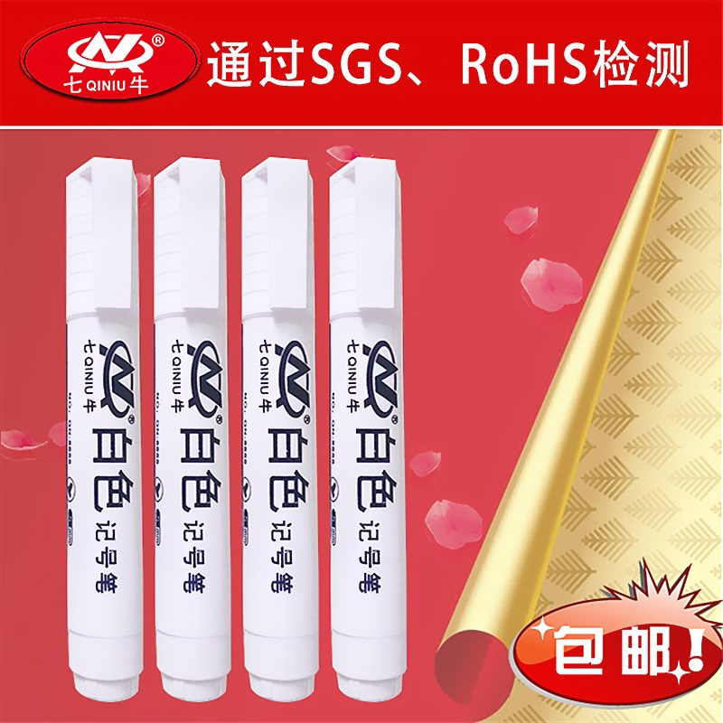 七牛白色记号笔粗油性防水马克笔单支工地双头大头笔玻璃塑料金属