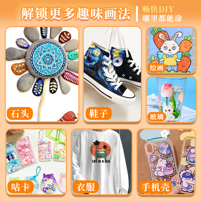 60色48色大容量丙烯马克笔盒装儿童专用可叠色不透纸幼儿园学生版软头丙烯笔可水洗水性水彩笔小孩画画笔