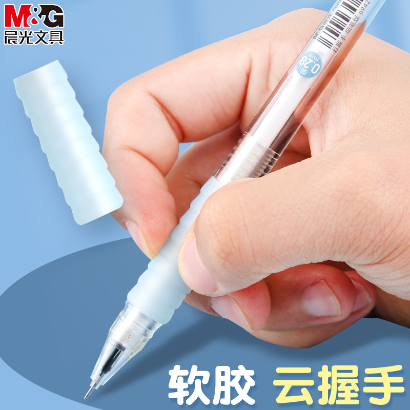 晨光0.2极细中性笔云握手细笔划学生用刷题做笔记全针管水笔财务
