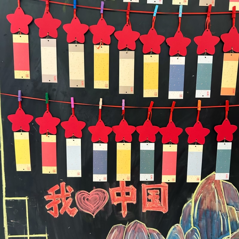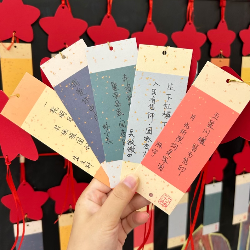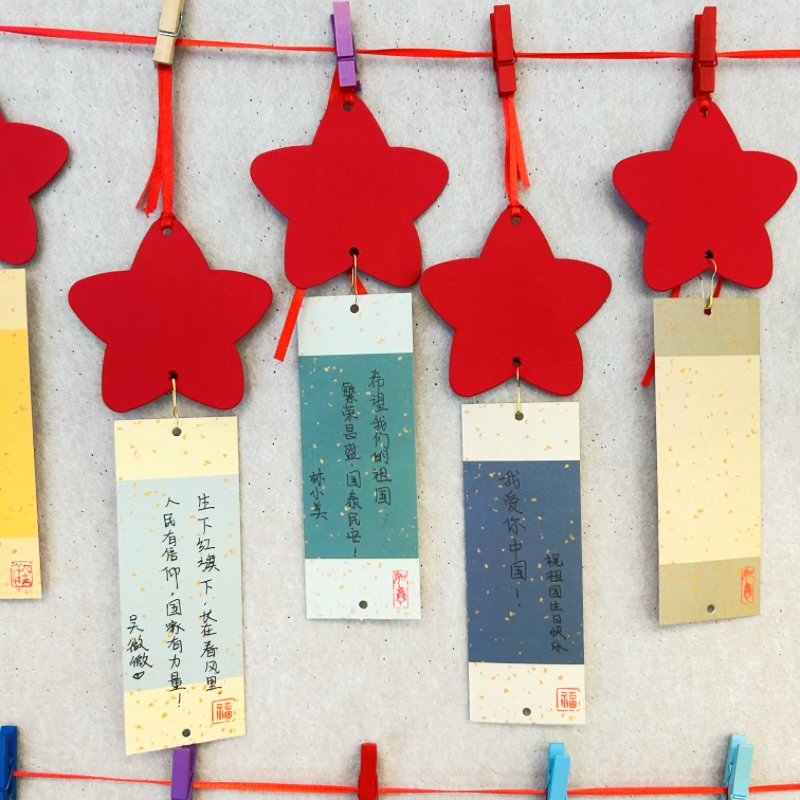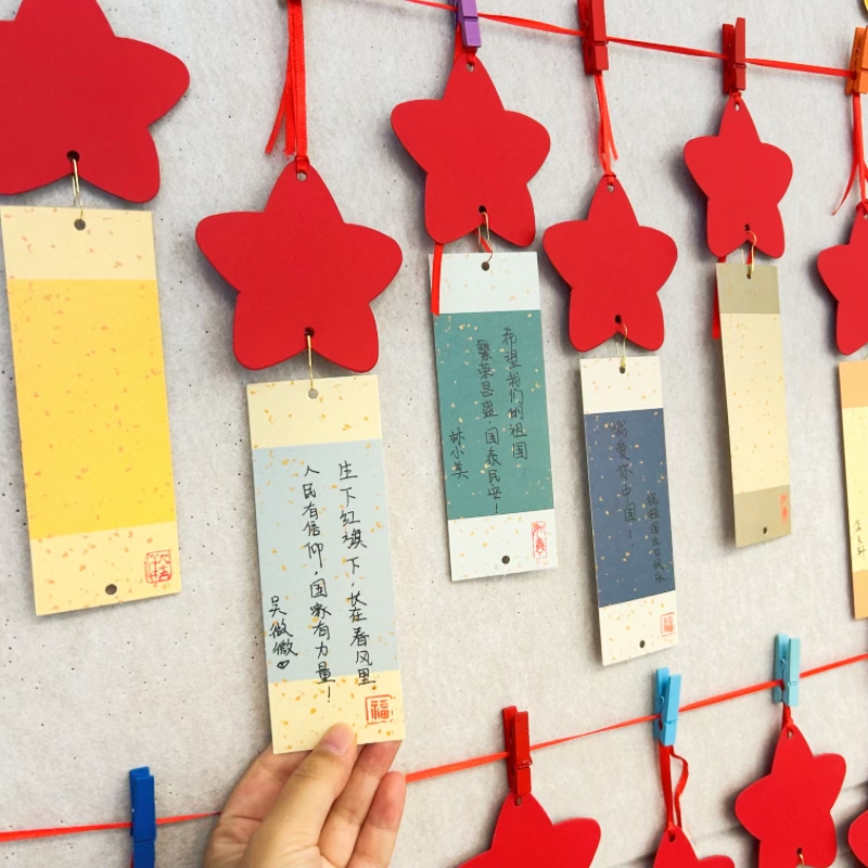 国庆节快乐星语心愿儿童小学生空白手写祝福语贺卡自制红色主题五角星书签班级文化墙布置装饰吊卡幼儿园环创