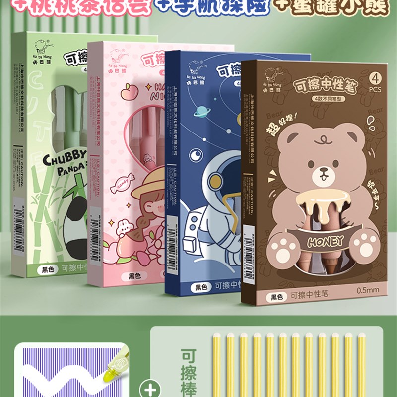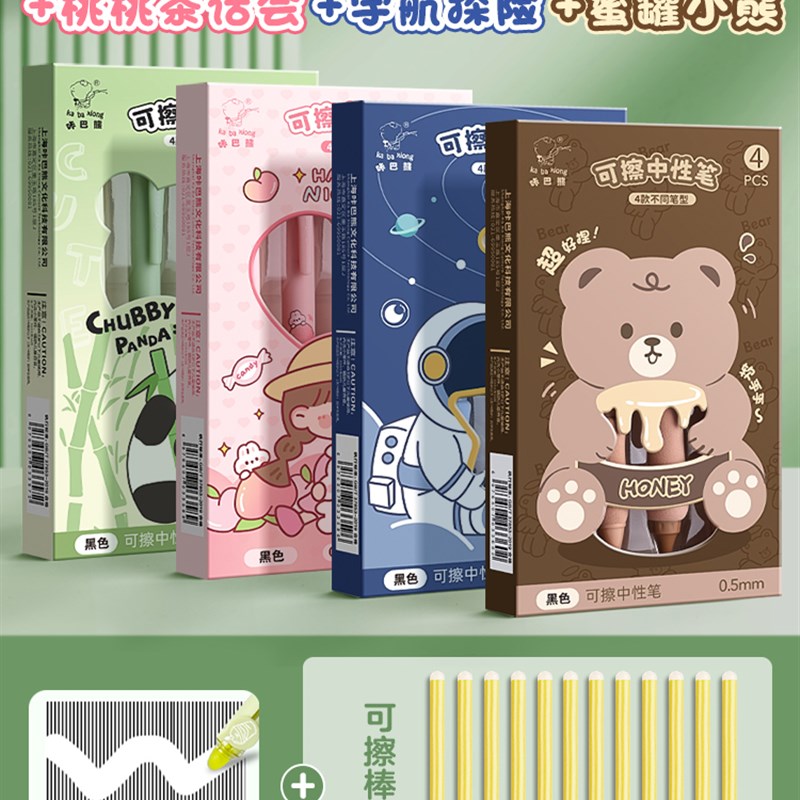 可擦笔按动式中性笔小学生热敏可擦笔高颜值黑色晶蓝色摩易可擦写