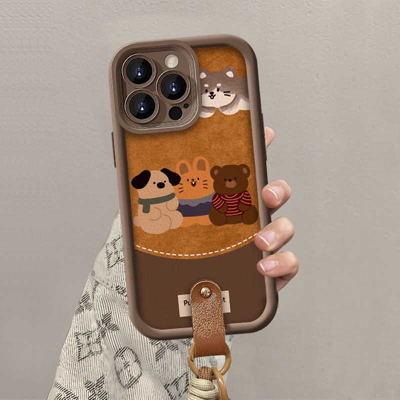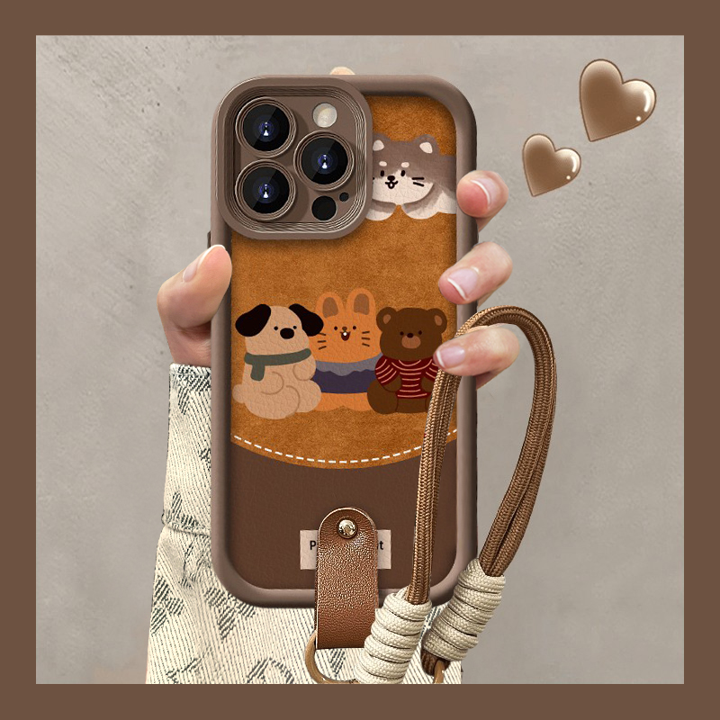 适用苹果17promax手机壳新款iphone16网红不撞款15Pro高端小羊皮质14plus带手绳13pm全包镜头保护套12防摔lv