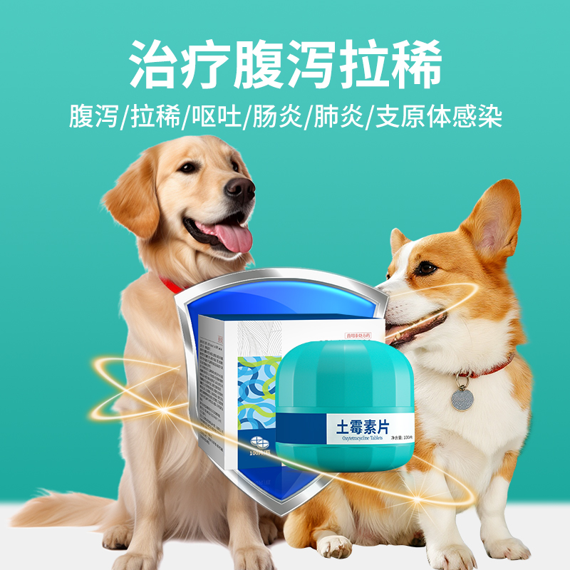 狗狗腹泻拉肚子抗菌消炎药呕吐肠炎咳喘兽用土霉素片宠物消炎药品