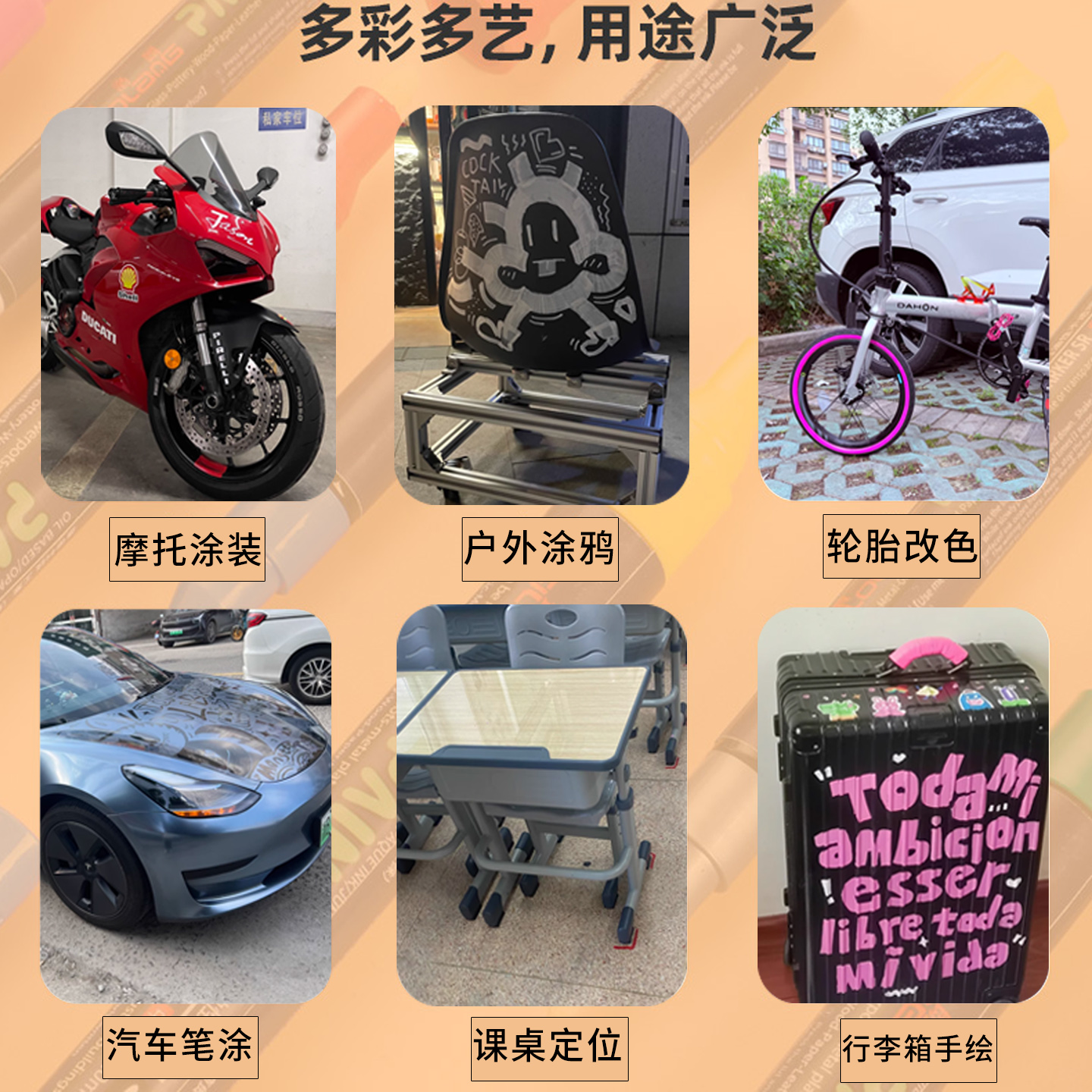 宽头油漆笔工业专用防水不掉色油性记号笔工地笔刷遮盖平头黑色轮毂改色覆盖笔红色墙面马克笔轮胎白色涂鸦笔