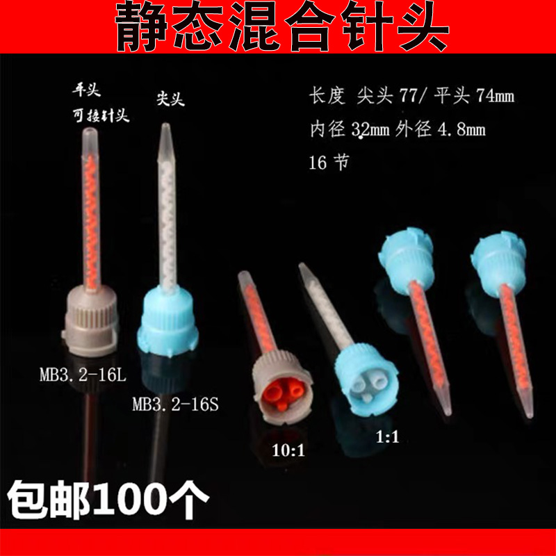 AB胶混合头胶嘴3M胶水1:1针筒10:1点胶尖针头静态混合管MB3.2-16S