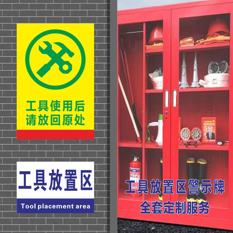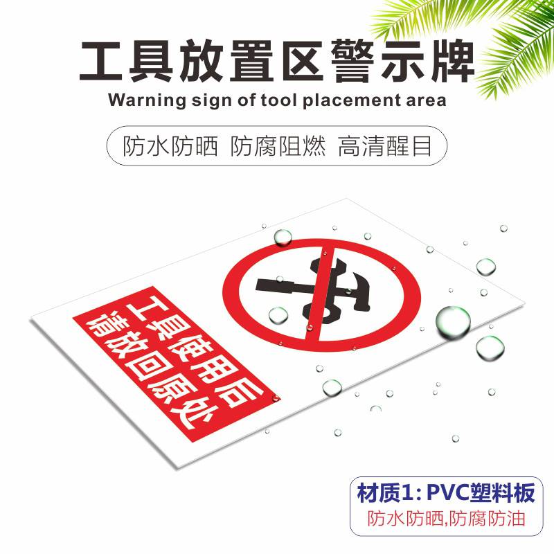 工具使用后请归位分区标识牌放置区温馨提示用完及时归还放回原处标示提示贴可设计内容定制pvc塑料板标