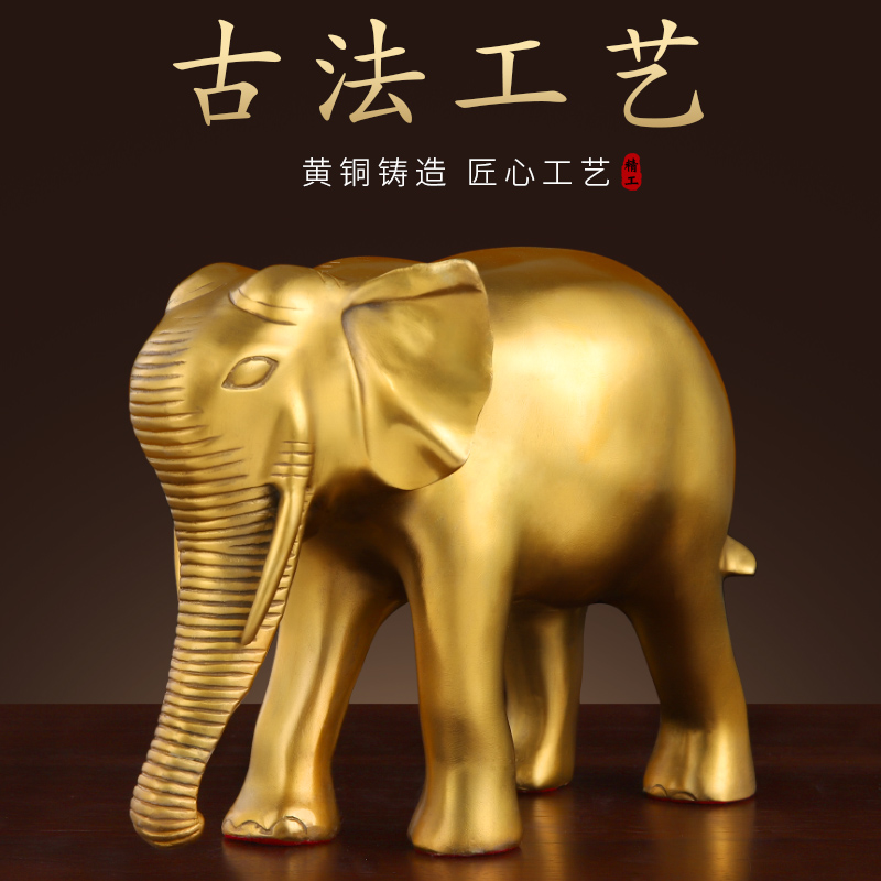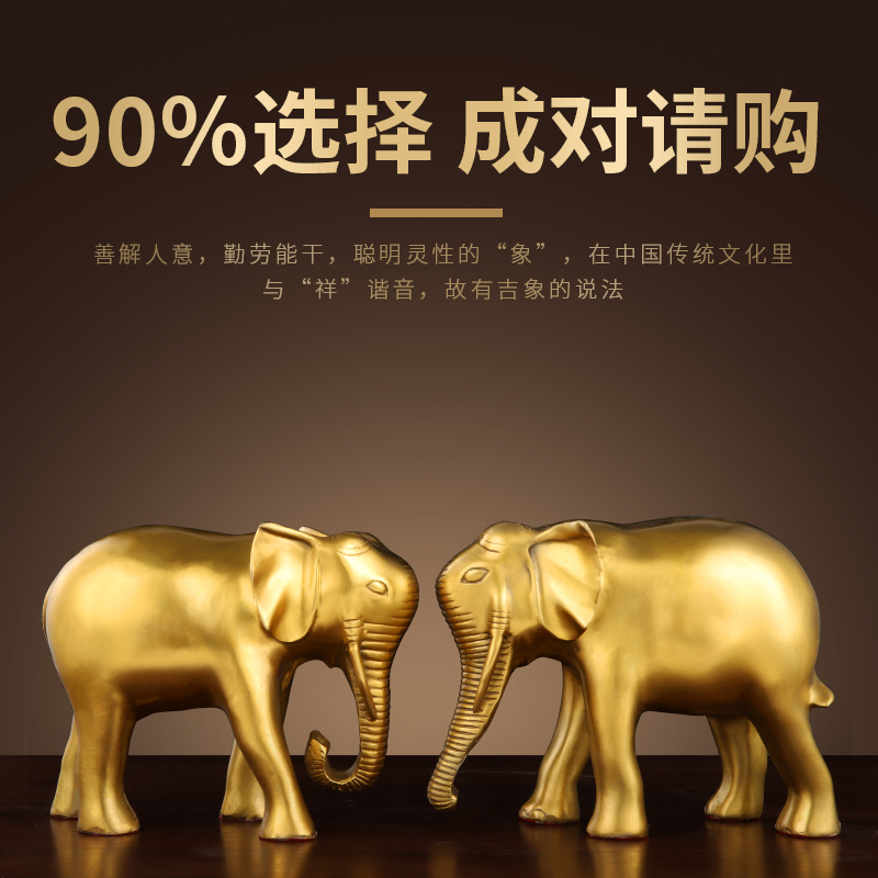 纯黄铜大象摆件一对铜象家居客厅酒柜办公室全铜吸水象装饰工艺品