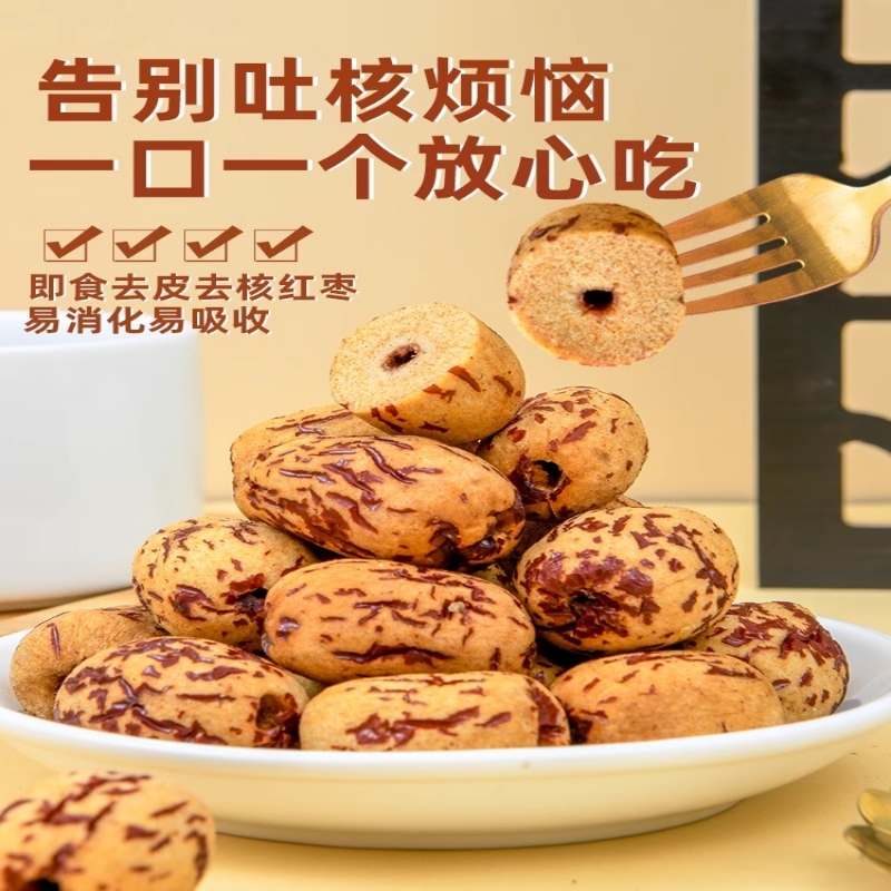 无核红枣新疆去核去皮若羌灰枣奶枣脱皮空心包粽子大红枣干货整箱