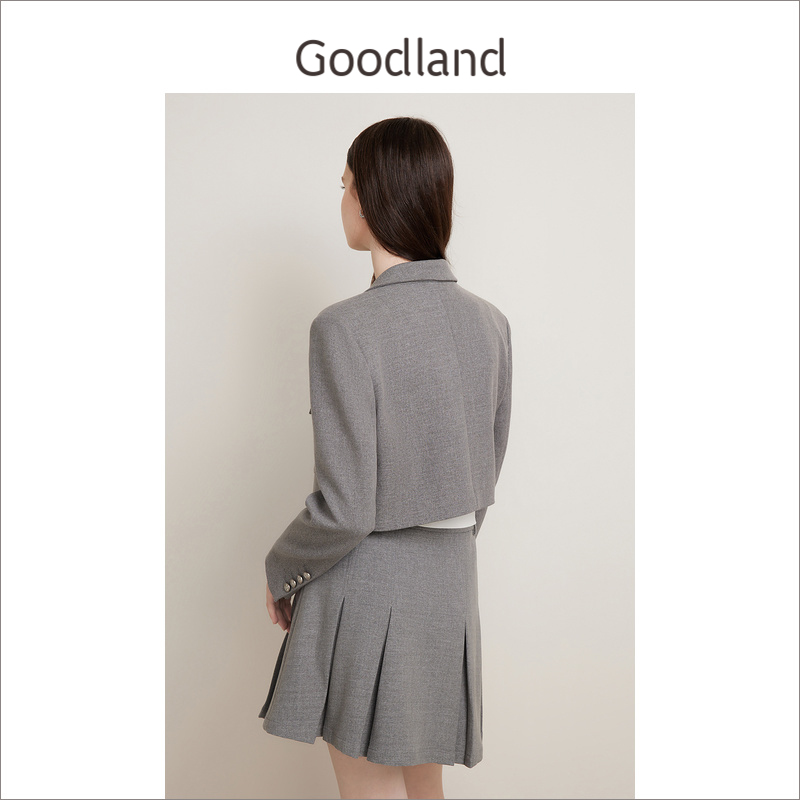 Goodland美地女装春季法式优雅经典截断式摩登正肩外套