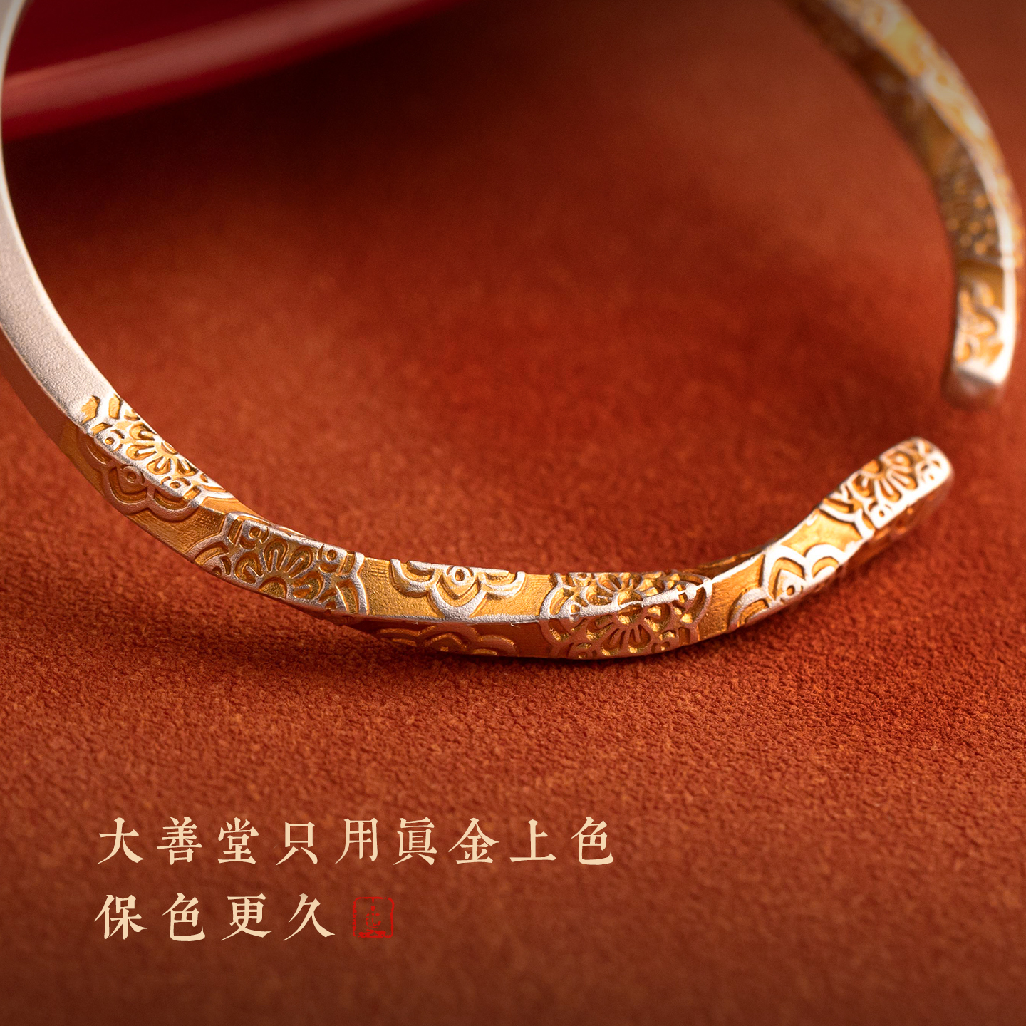 【大师手作 只此一件】描金足银手镯莫比乌斯环可调节女纯银镯子