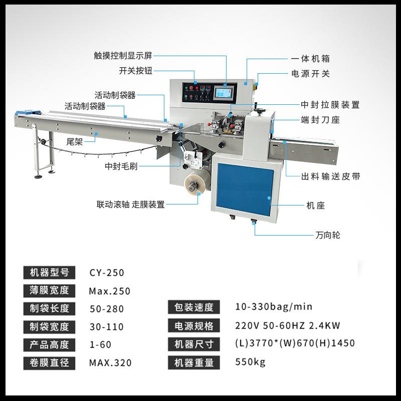 自动枕式包装机 糖果螺丝五金件包装机 蔬菜水果保鲜膜打包封口机