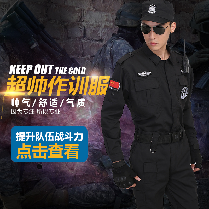 特勤保安工作服长袖秋冬季套装作训练服标志腰带帽鞋裤子黑色装备