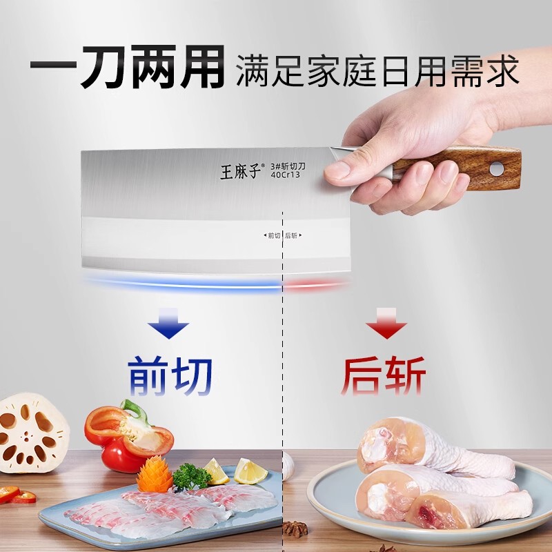 王麻子厨房家用不锈钢超锋利斩切厨师斩骨切菜切肉专用斩切刀一把