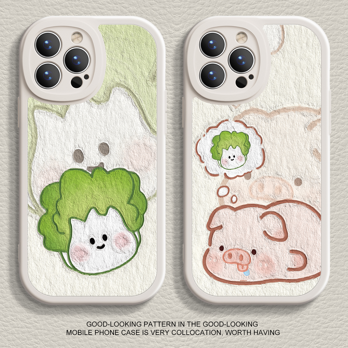 适用iPhone16promax手机壳苹果17新款13mini白菜小猪14pro液态8plus7p硅胶xr情侣xsmax软2男14plus女6e保护套
