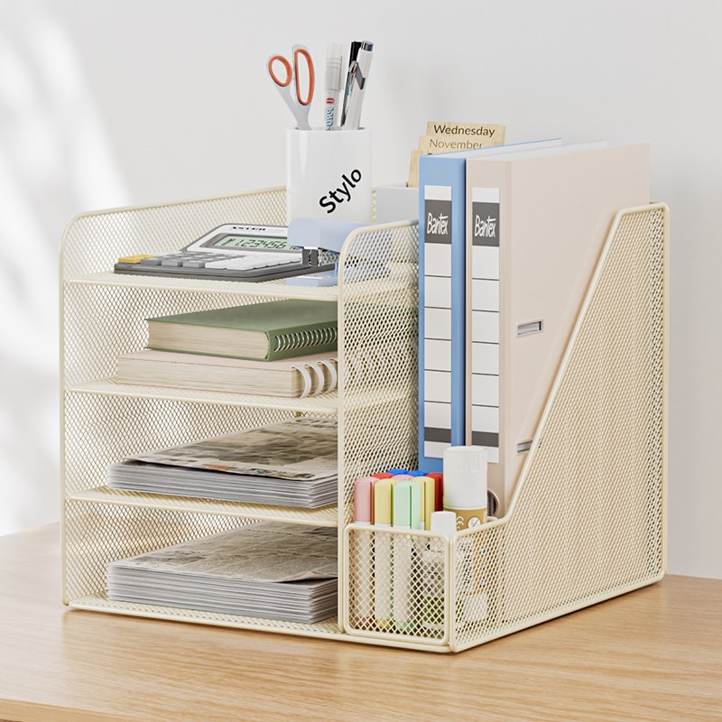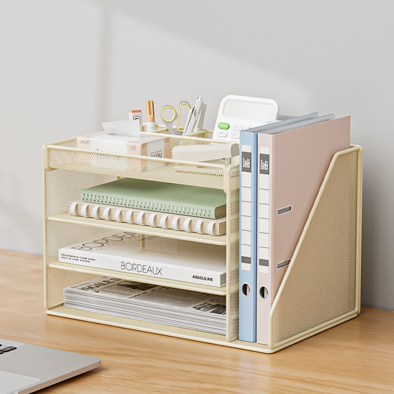 办公桌收纳置物架文件收纳盒办公用品文件架桌面书架多层大容量文件框文件夹A4纸资料档案整理架金属书立架