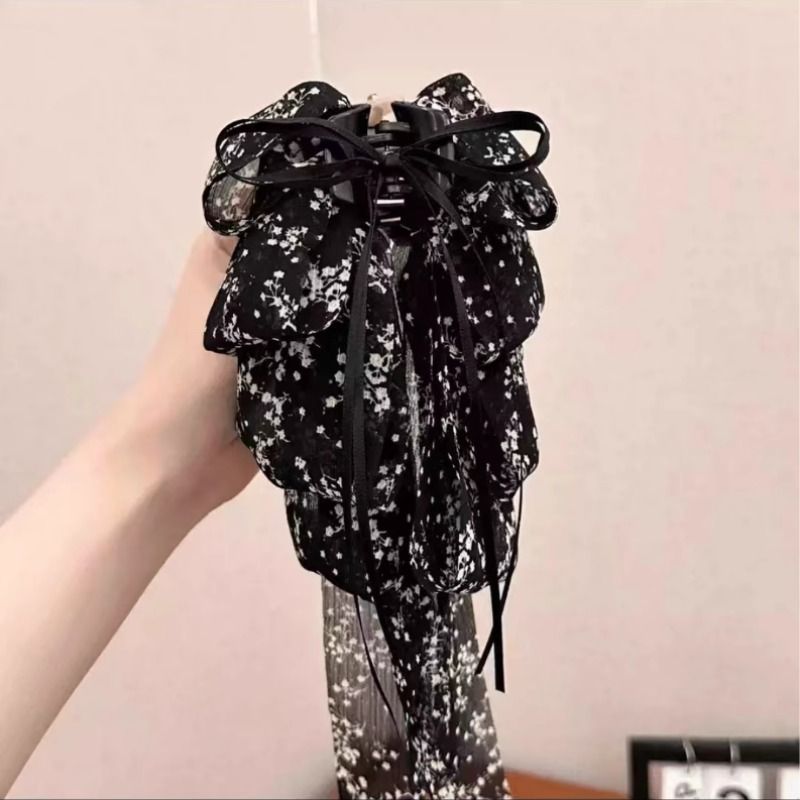 半扎发蝴蝶结显脸小飘带抓夹女超仙马尾夹子碎花盘发鲨鱼夹蓬松感