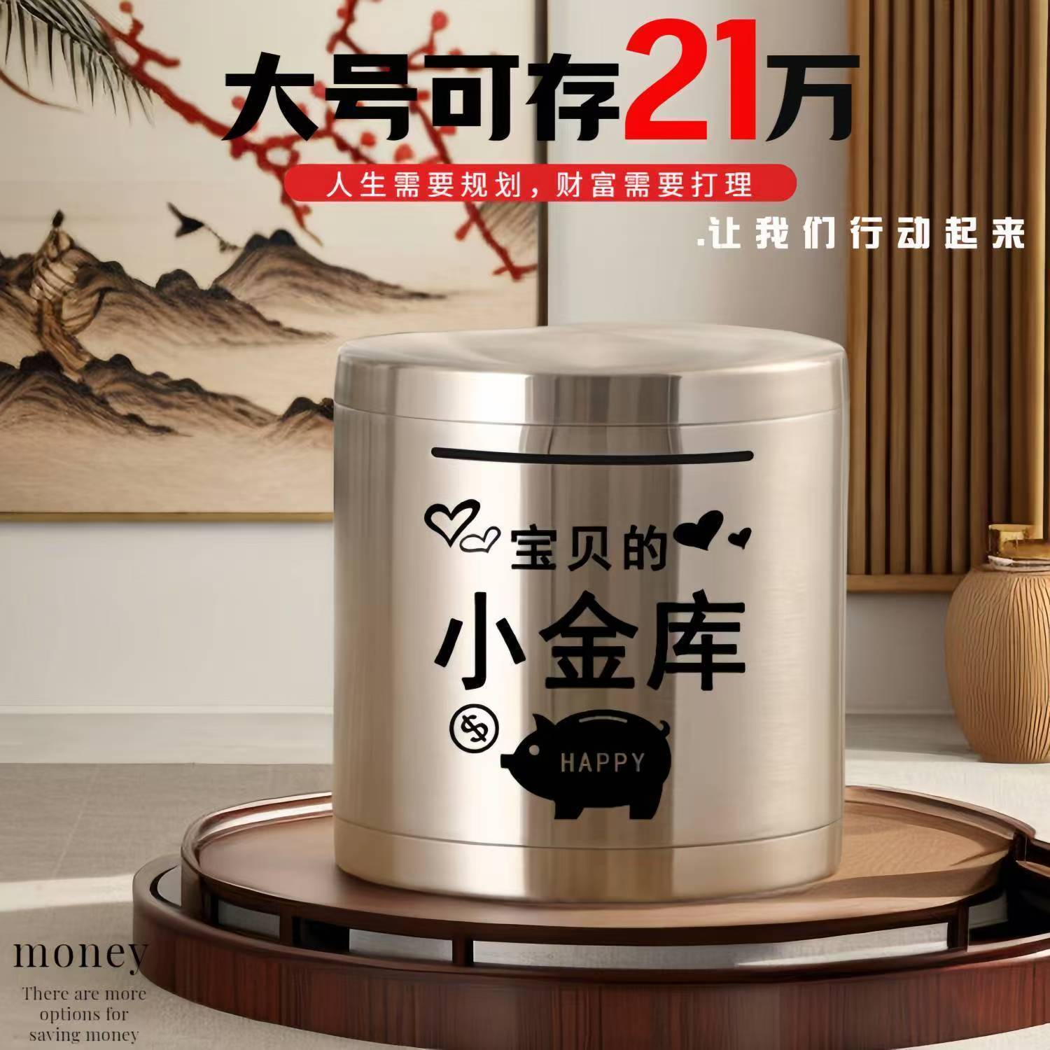 存钱罐只进不出儿童男女孩大号2025年新款不锈钢储钱罐成人存钱箱