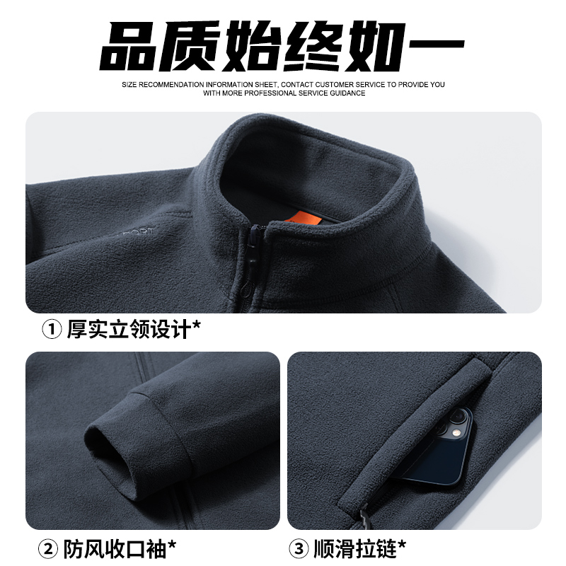 骆驼男装抓绒外套春秋新款防风保暖摇粒绒开衫夹克冲锋衣内胆户外