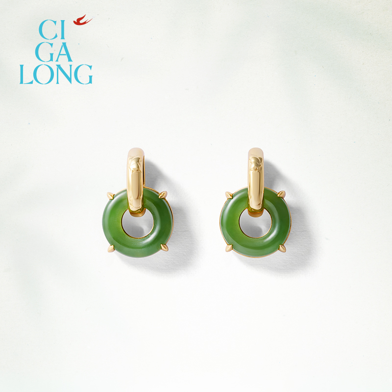 CIGALONG龙梓嘉事事平安菠菜绿和田玉项链耳钉新品系列新中式珠宝