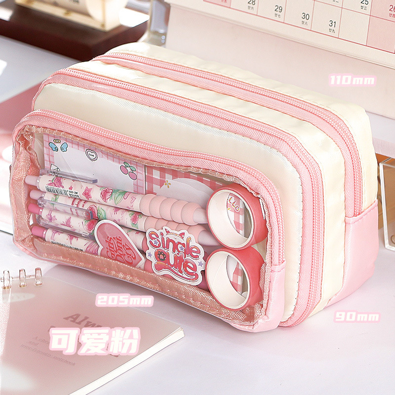 二次元日系痛包2025超火笔袋新款撞色高颜值ins风男女孩透明大容量小学生初中文具铅笔盒多层多功能收纳袋