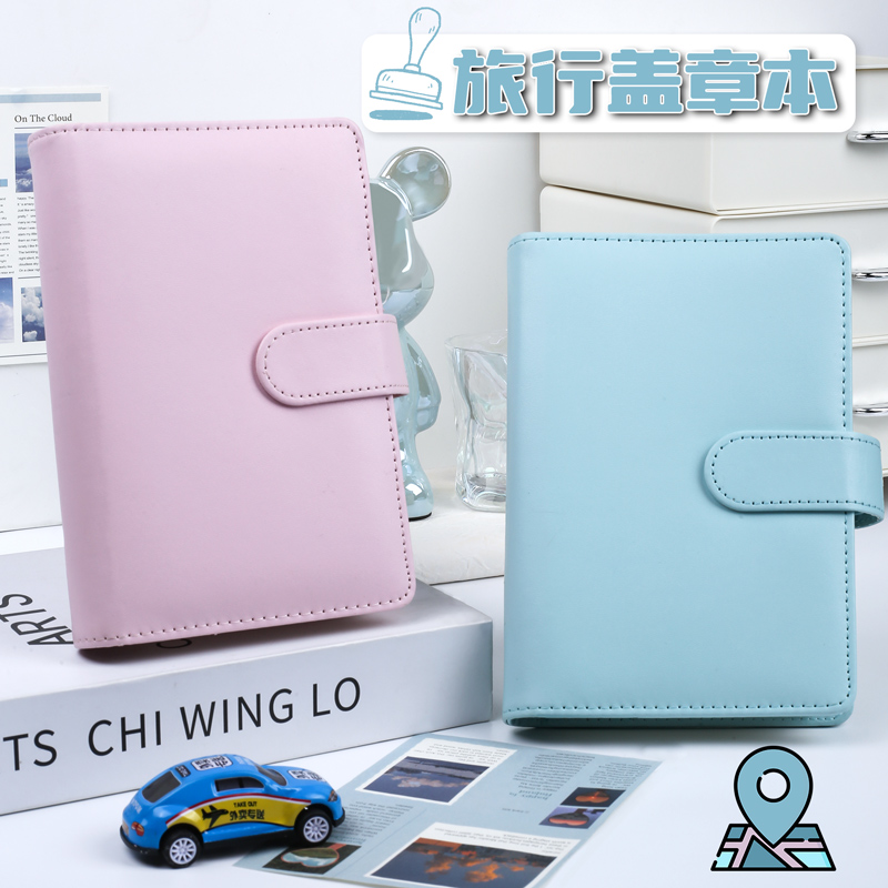 高颜值A5皮面活页本大容量可拆卸旅游景点打卡本A6便携式空白盖章活页笔记本印章纪念集章册旅行邮票收集本