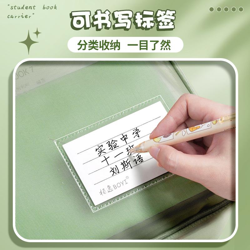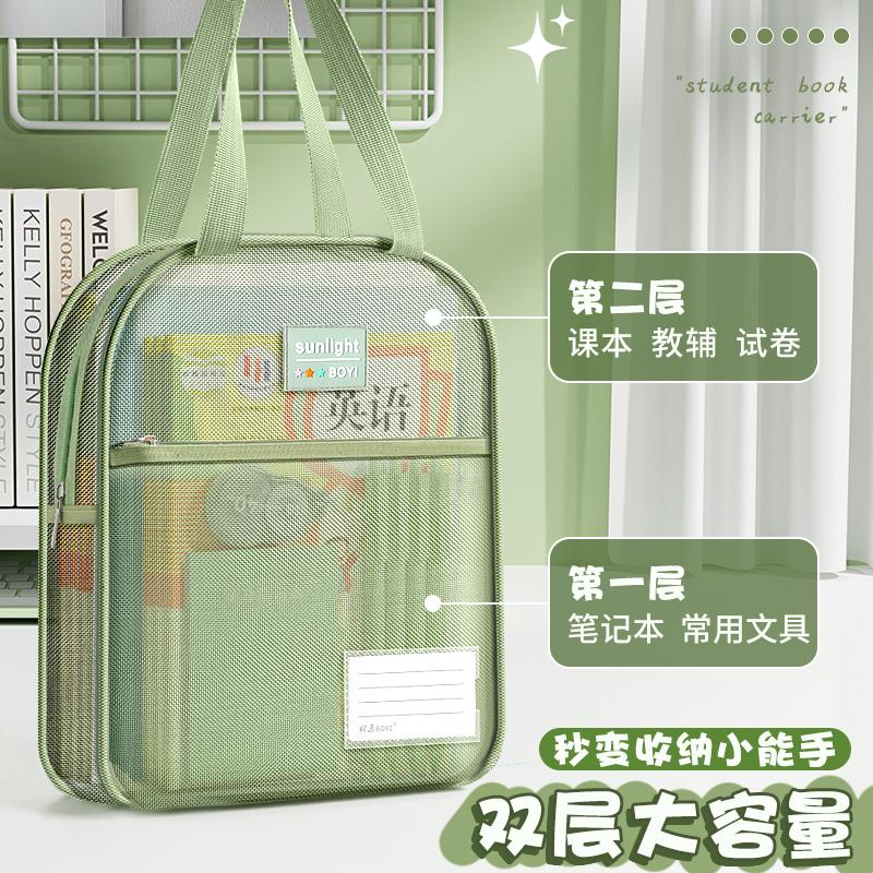 加厚网纱文件袋学生补习袋拎书袋大容量手提袋补课袋双层加宽书包袋学科袋科目袋透明可入考场资料文件收纳袋