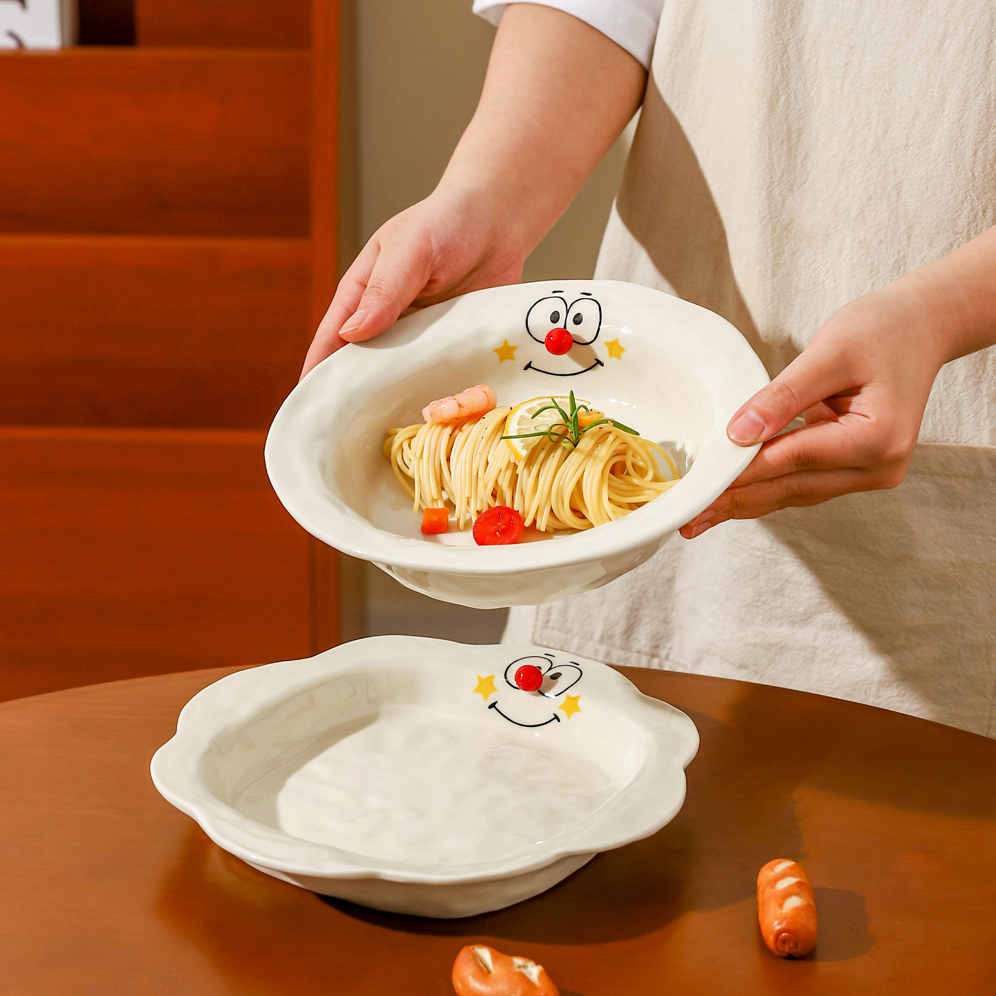 奶油风陶瓷碗家用卡通菜盘子可爱米饭碗汤碗釉下彩儿童餐具耐高温