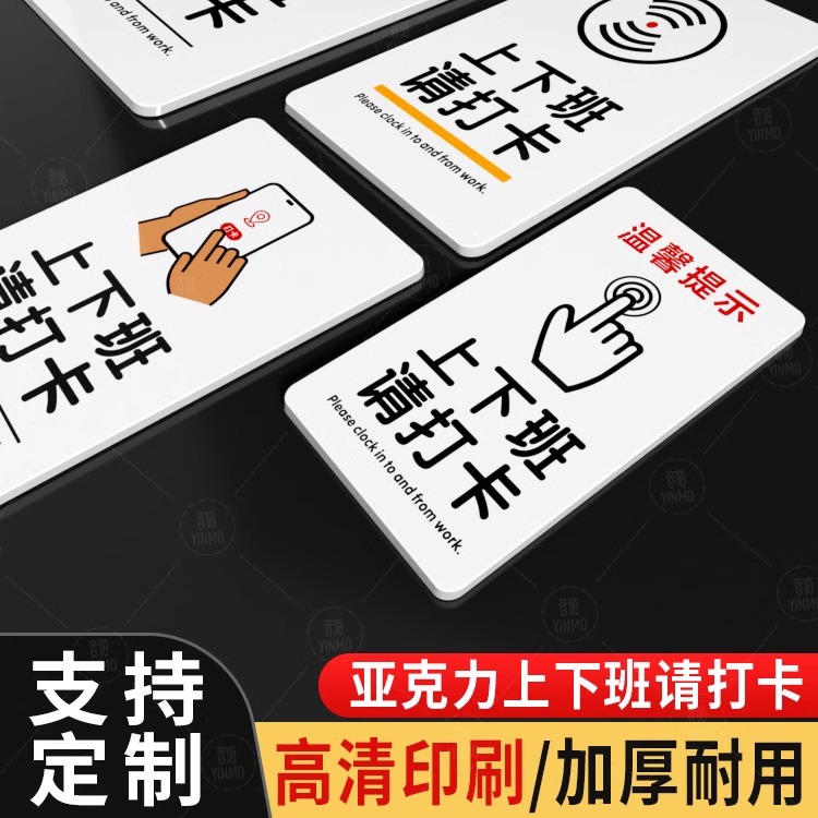 高档亚克力办公室上下班请打卡温馨提示牌定制古铜金工厂记得打卡门牌标识牌严格遵守公司管理制度告示牌门贴