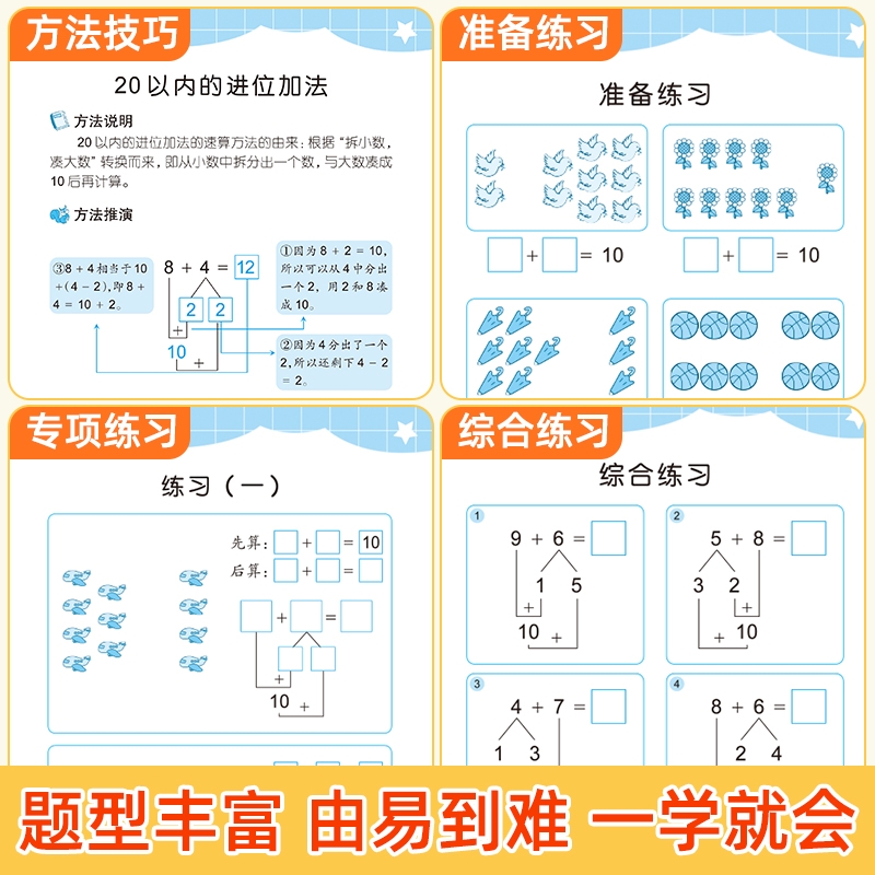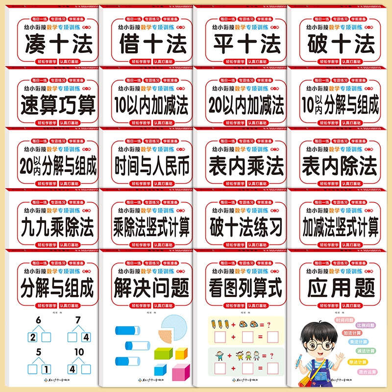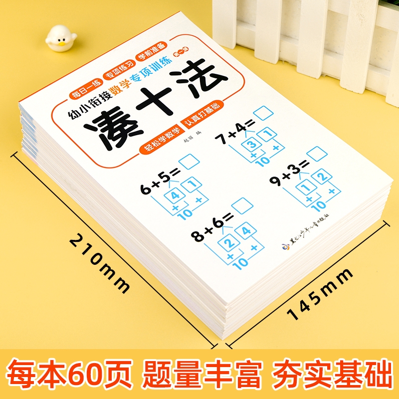 幼小衔接凑十法借十法时间与人民币数学练学前班10以内分解加减法学前幼儿数学思维训练幼升小衔接入学准备专项综合