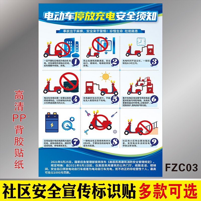 反电诈社区安全宣传标语贴五不一打海报电动停放充电安全须知楼道禁止停放电瓶车禁止高空抛物小区楼道宣传贴