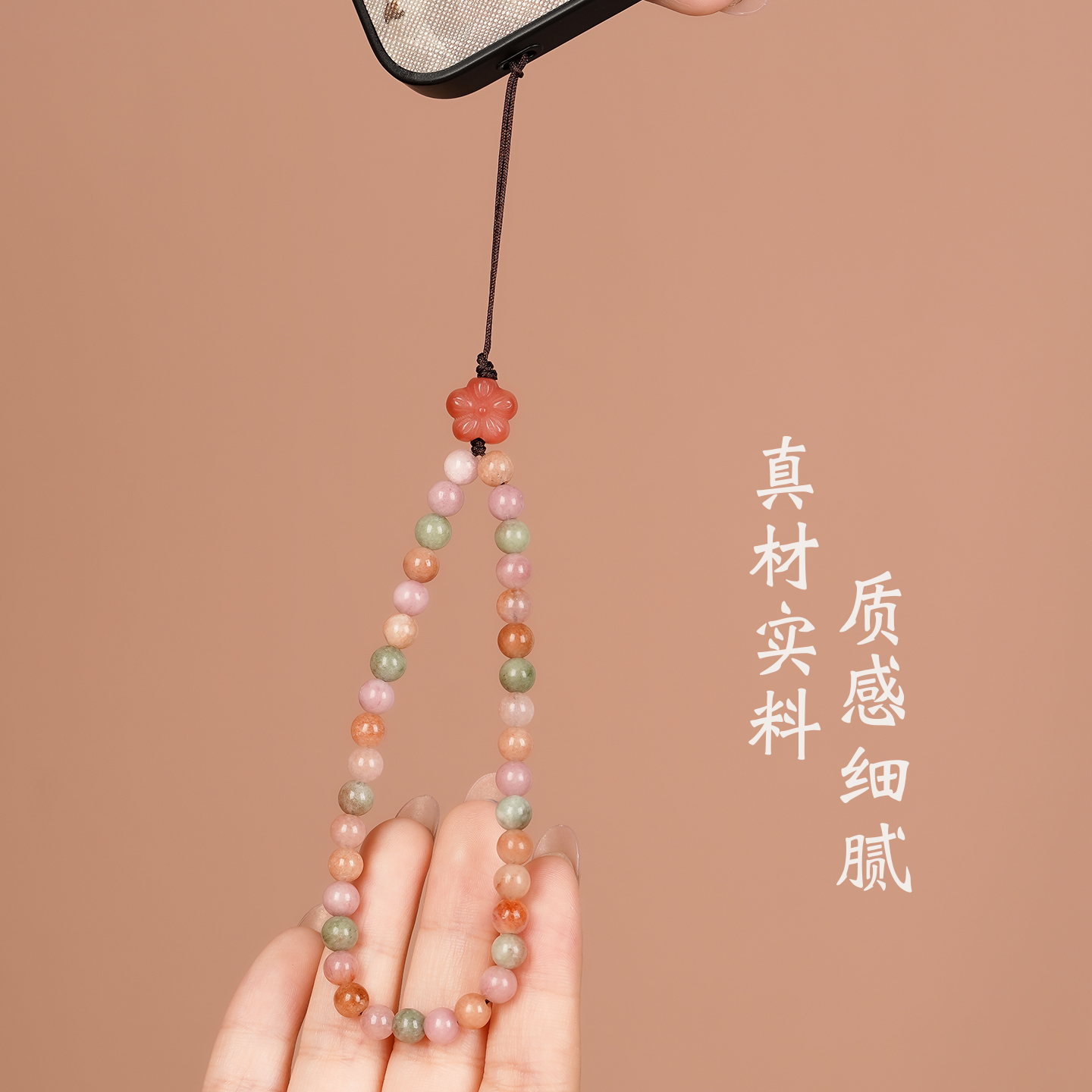 盐源玉髓手机链粉嫩少女心可爱手腕款手机挂绳简约精致手机挂链新