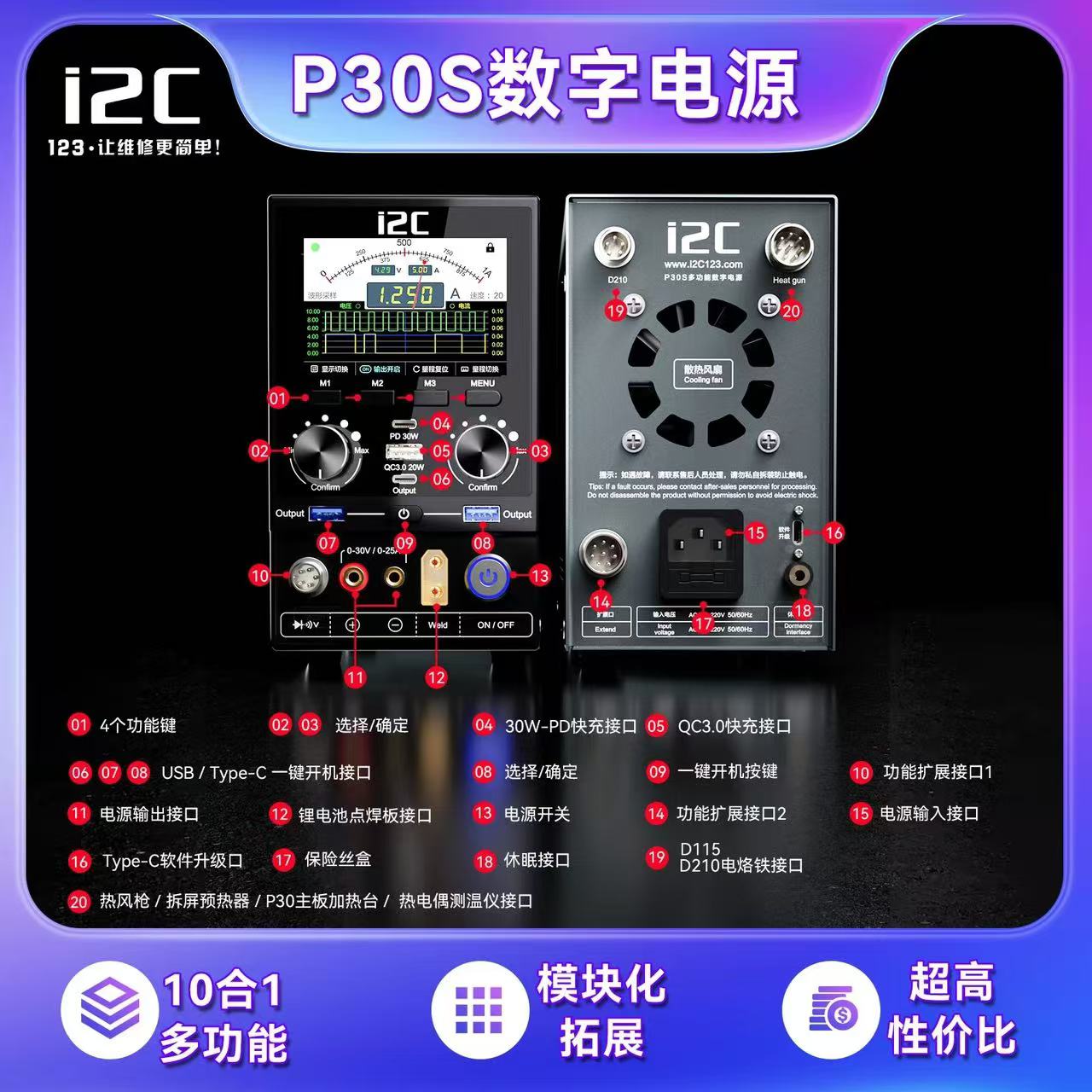 i2c P30S数字电源多功能大屏幕手机维修一键开机短路修复电池点焊
