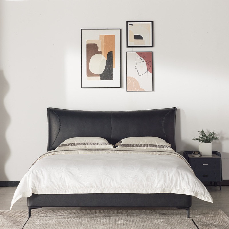 现代简约真皮床主卧双人大床软包意式极简大黑熊轻奢储物高箱婚床