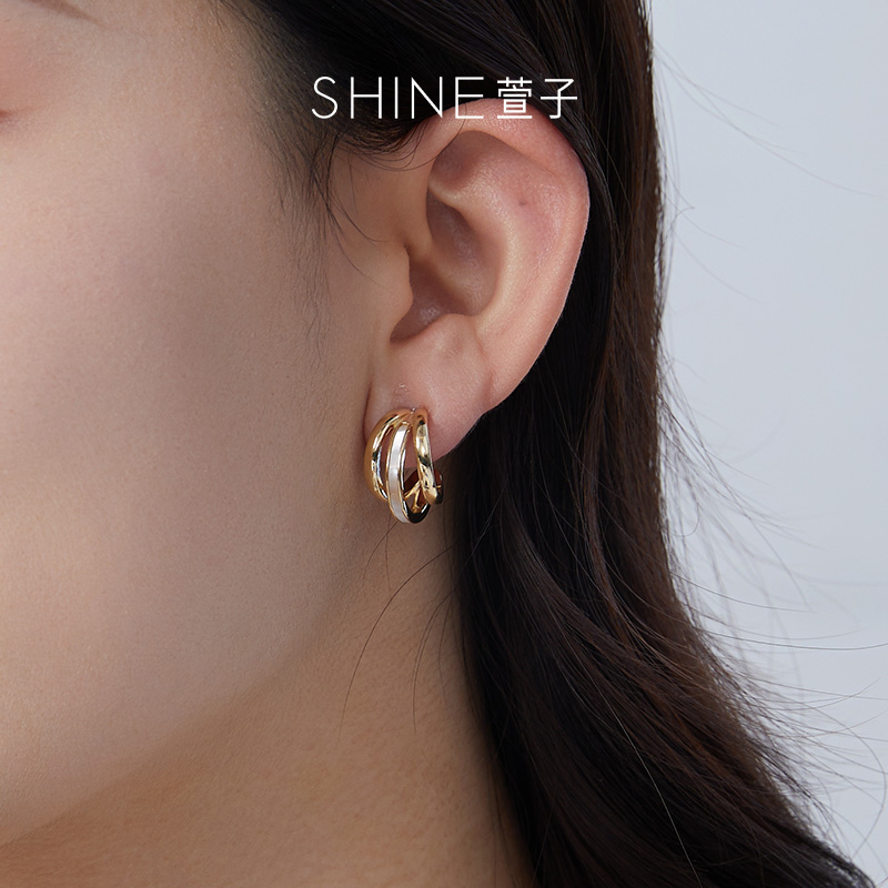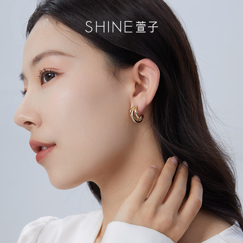 SHINE萱子饰品金色贝壳耳钉耳圈女C圈复古耳环设计感生日礼物